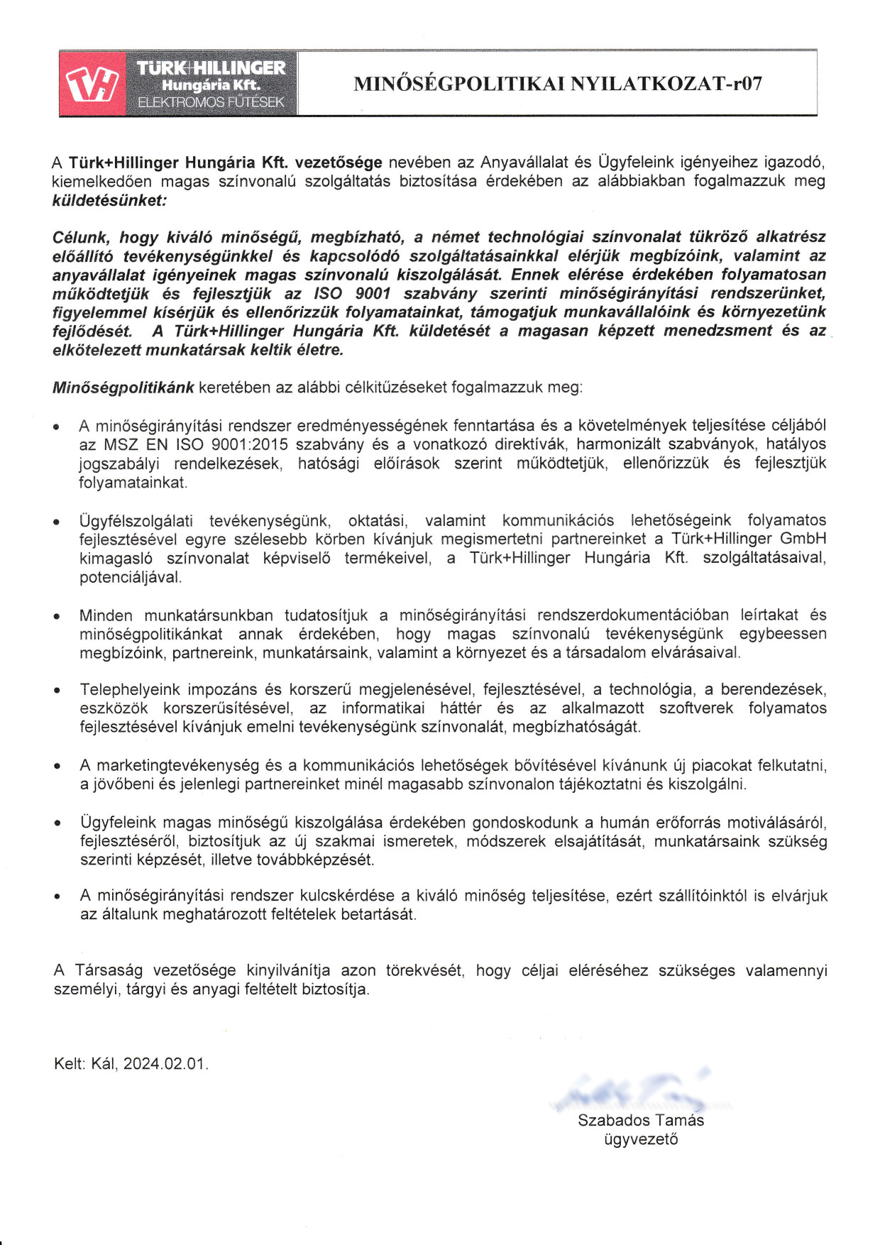 Ennek elérése érdekében 1999 óta folyamatosan működtetjük és fejlesztjük az ISO 9001 szabvány szerinti minőségirányítási rendszerünket, figyelemmel kísérjük és ellenőrizzük folyamatainkat, támogatjuk munkavállalóink és környezetünk fejlődését.